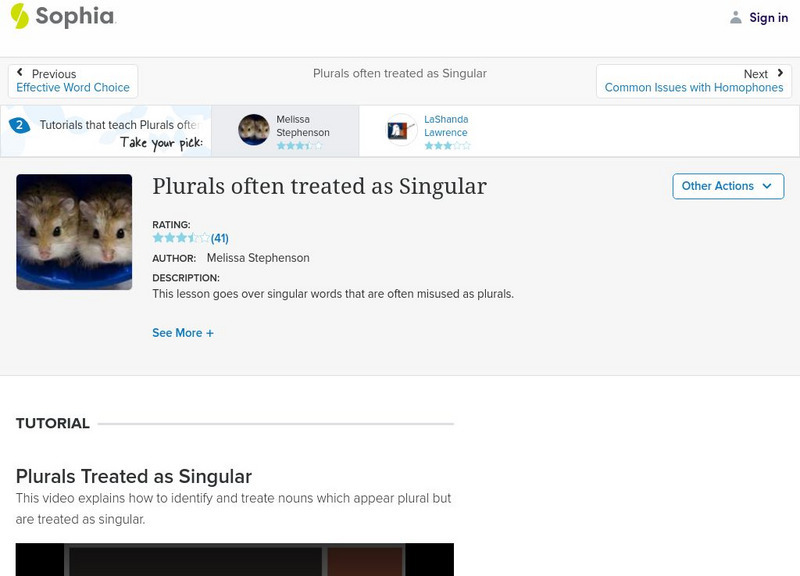 This video lesson focuses on words that appear plural but take a singular verb. It discusses the rules of subject-verb agreement, and then looks at three kinds of confusing words: indefinite pronouns, collective nouns, and misleading...