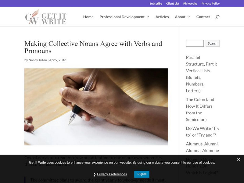 Learn how to use collective nouns, when to use singular verbs with them, and when to apply logic to the grammar situation. A brief quiz checks your understanding.