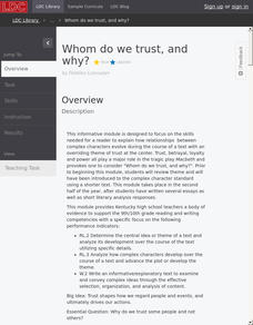 Is it possible to regain trust? Scholars put much thought into the subject of trust after reading Shakespeare's Macbeth. Readers work together to analyze how the character relationships develop the a message about trust. They then...