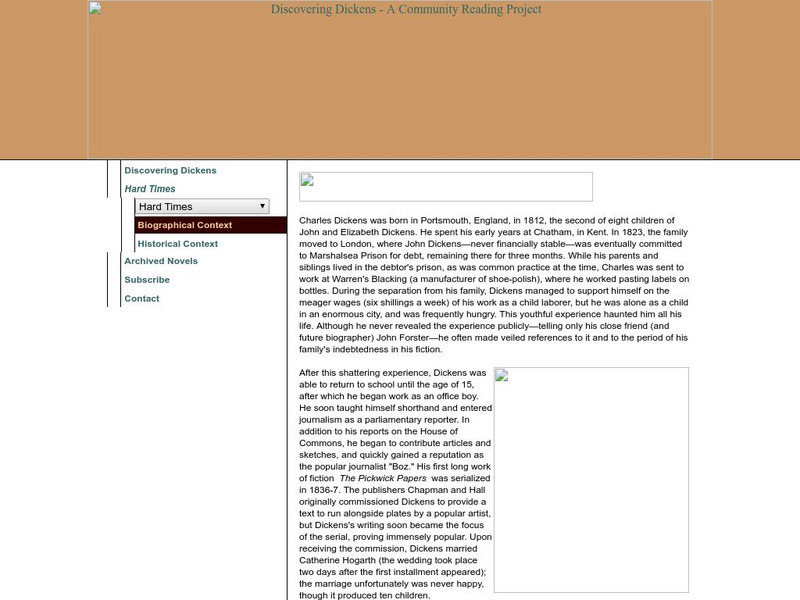 A brief biography of author Charles Dickens, particularly in reference to his writing the novel Hard Times, released in 1854. Includes more information about his early life, literary career, and eventual death and burial.