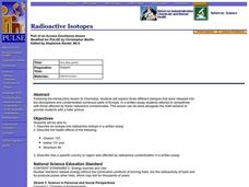 Students describe an isotope and radioactive isotope in a written essay. They describe how a specific country or region was affected by radioactive contamination and attempt to sympathize with those affected by these radioactive...