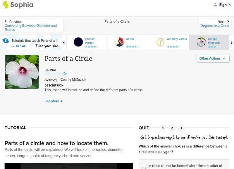 Take a look at this tutorial to learn about circles and see the different parts of a circle. [3:54]