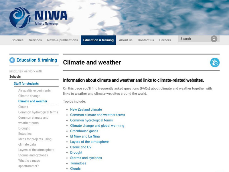Want to learn more about the climate and weather? This webpage contains links to websites around the world concerned with providing information about climate and weather. Topics include ozone, greenhouse gases, global warming, tornadoes,...