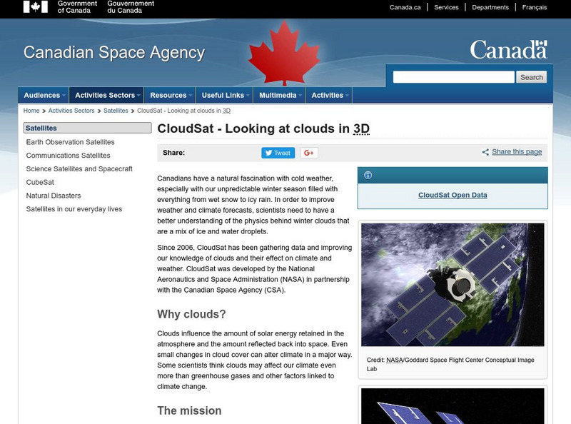 Canadian Space Agency: Cloud Sat Looking at Clouds in 3 D