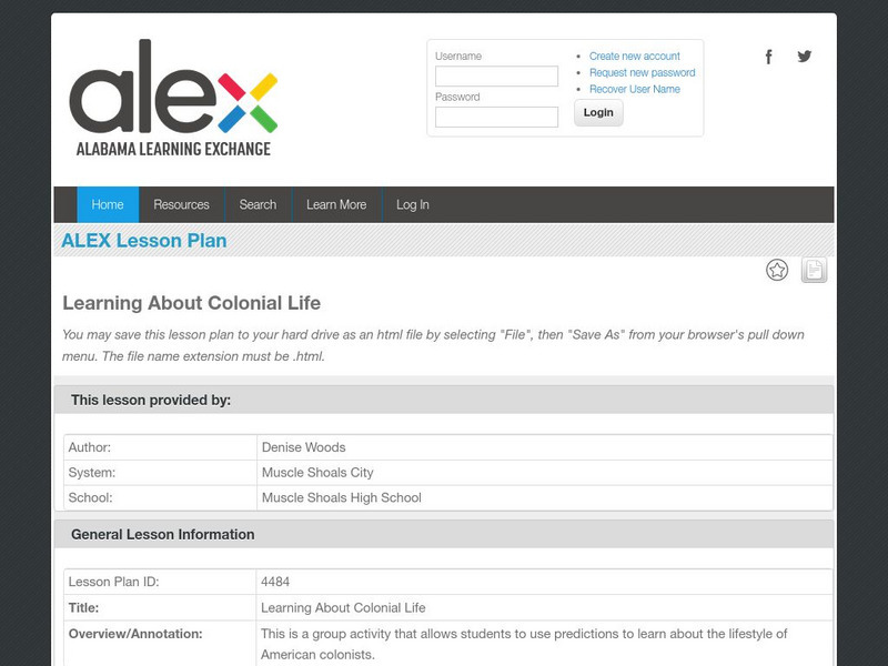 Alex: Learning About Colonial Life