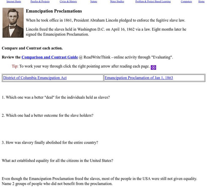 Students will review, compare and contrast the Emancipation Proclamation of January 1, 1863 with the District of Columbia Emancipation Act.