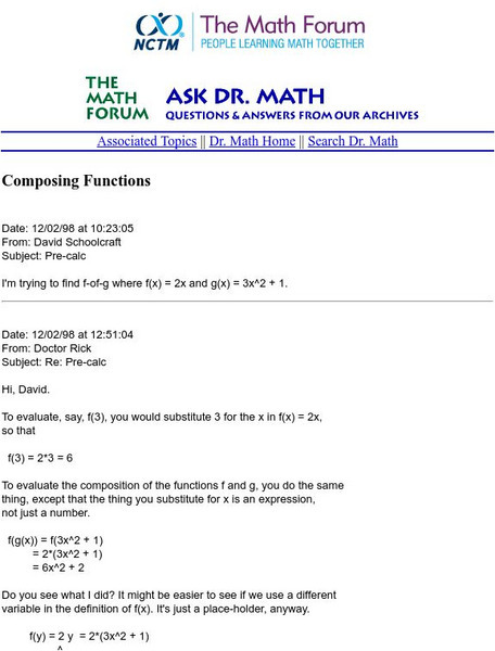 The Math Forum: Ask Dr. Math: Composition of Functions