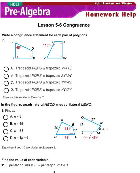Holt, Rinehart and Winston: Homework Help Independent Practice: Congruence