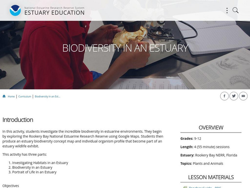 This activity introduces students to the amazing biodiversity of an estuarine environment, focusing on the habitats in the Rookery Bay National EstuarineResearch Reserve, Florida. They begin by exploring the estuary using Google Maps....