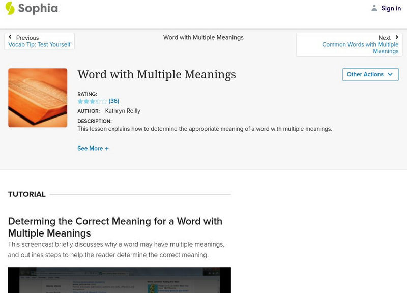 This lesson focuses on determining the correct meaning of a word with multiple meanings. First it explains why words in English have multiple meanings. Then using the word "bear," it provides steps and examples for how to determine the...