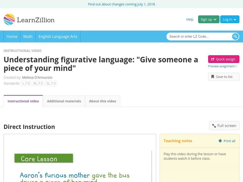 Learn Zillion: Understanding Figurative Language: "Give Someone a Piece of Your Mind"