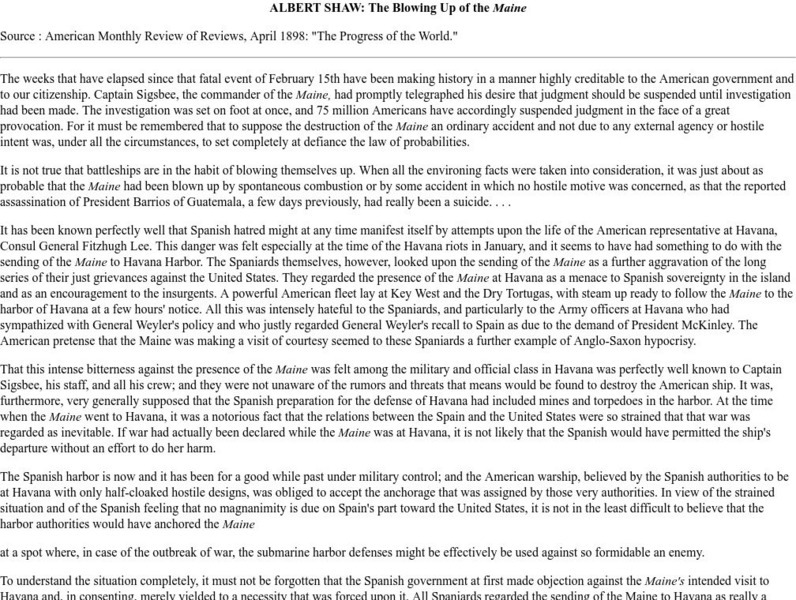 International Relations: Albert Shaw: The Blowing Up of the Maine