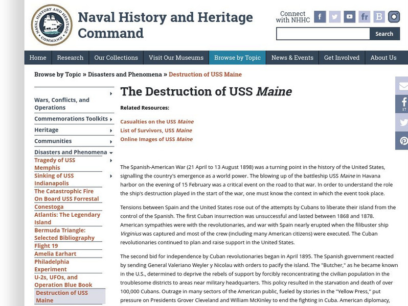 Naval History and Heritage Command: The Destruction of Uss Maine
