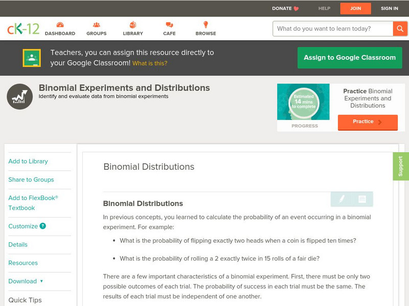 [Free Registration/Login may be required to access all resource tools.] Covers binomial distributions.