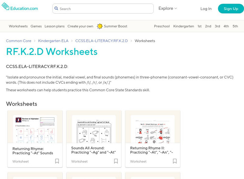 [Free Registration/Login Required] Choose from a variety of worksheets to help students practice pronouncing the initial, medial vowel, and final sounds (phonemes) in three-phoneme (consonant-vowel-consonant, or CVC) words.