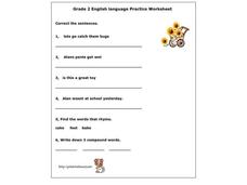 Reinforce grammar skills in your second grade class with this short instructional activity. Four sentences give young readers the opportunity to revise and rewrite them correctly. Second graders go on to find the rhyming words from a...
