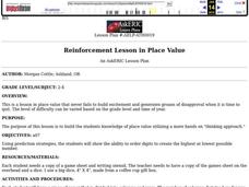 Understanding place value is the goal of this math lesson. Learners play a game which has them create a number cube, gameboard, and then play the game using the steps outlined in the lesson. The lesson also has adaptations for different...