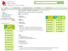 Students recognize coins and understand their values. In this coins lesson, students identify sets of coins and match them with their value.