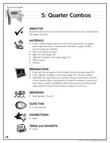 Review money with this motivating lesson. Using a simple game, learners practice adding up coins to total $.25. This lesson comes with worksheets that could be used to cement students' knowledge of this topic.