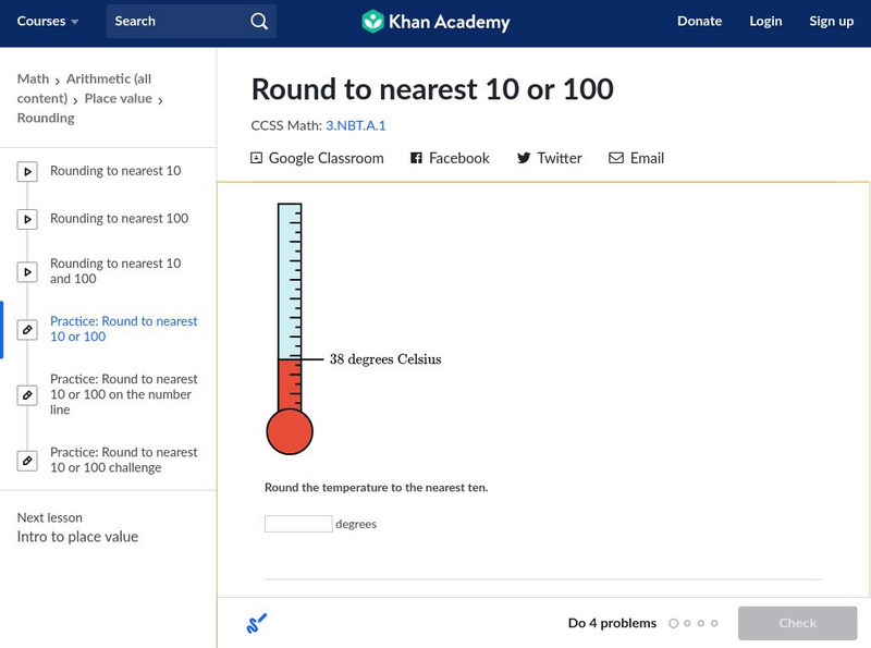 Practice rounding to the nearest ten and rounding to the nearest hundred. Students receive immediate feedback and have the opportunity to try questions repeatedly, watch a video tutorial, or receive hints about rounding.