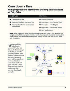 Students use Inspiration to Identify the defining characteristics of Fairy Tales, They create a literary web, study the basic structure of plot, and recognize that themes reoccur across literary works. They complete Once Upon a Time...