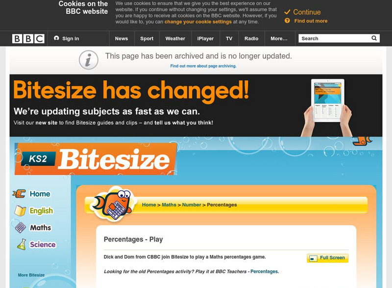 Check your understanding of percentages by taking this quiz. Links are provided that will allow you to increase the size of your quiz to full screen, see the quiz in a different format, review key percentage facts, and have fun with the...
