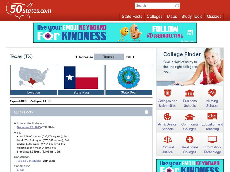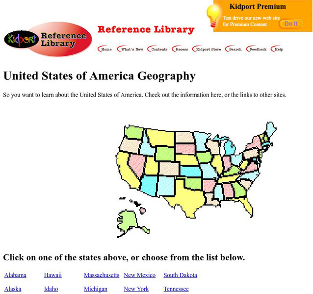 This site contains a fun way to learn about the states within the United States. Click on the state that you want to learn more about and it provides facts, geographic landmarks, points of interest, major industries, a quiz and more.