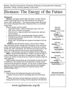 Students research renewable fuels. In this alternative energy lesson, students compile information and create a comparison chart on renewable resources. This lesson includes additional suggested readings, vocabulary, and a Biomass...