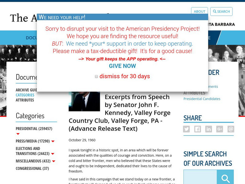 American Presidency Project: Excerpts From Speech by Senator John F. Kennedy