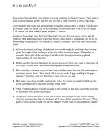 It's time to check the mail! The task is to determine the most cost-effective way to mail a packet of information. Young scholars write an equation that models the amount of postage as a function of the number of sheets mailed and...