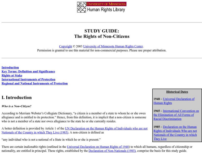 University of Minnesota Human Rights Library: The Rights of Non Citizens