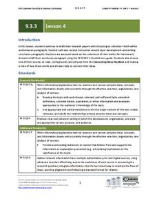 The fourth activity in a unit on crafting a research paper focuses on cohesion within and between paragraphs. Class members examine models that lack cohesion and ones that are cohesive and logically developed before using what they have...