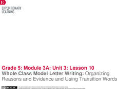 Whole Class Model Letter Writing: Organizing Reasons and Evidence and Using Transition Words
