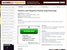 Seventh graders create a design using a detailed drawing reversing positive and negative space. They explain organic shape and geometric shape.