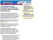 An extensive lesson explores equivalent fractions and is intended for three 60-minute periods. Young mathematicians compare and order fractions with like and unlike denominators. Included are worksheets, assessments, and answer sheets;...