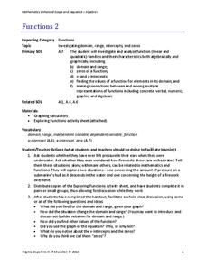 Examine key features of various functions through exploration. A comprehensive lesson plan has learners describe the domain, range, end behavior and increasing/decreasing intervals of various functions. Function types include linear,...