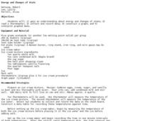 Students make ice cream as a result of viewing changes of states of matter. In this matter lesson plan, students learn how heating and cooling can effect a state of matter to change.