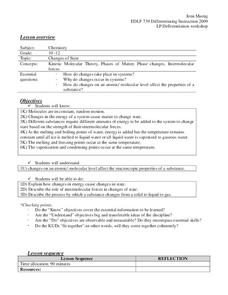 Students examine molecules and the changes in energy of a system. In this energy systems lesson students complete a lab activity and describe changes of state.