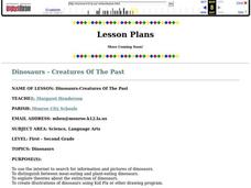 Young scholars use the Internet to search for dinosaurs, then distinguish between meat-eating and plant-eating dinosaurs. They explore theories about the extinction of dinosaurs and create illustrations of dinosaurs using Kid Pix or...
