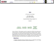 High schoolers analyze the lyrics of protest songs as a catalyst for social change. They discuss the influence of music on behavior and explain the use of music as historical record.