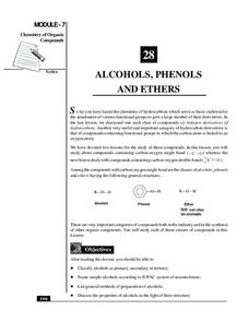 Classes continue their study of organic compounds in a detailed lesson covering alcohols, phenols, and ethers. Naming these compounds, classifying them, and describing their preparation and use are some of the topics covered. Through...