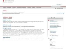 In this lesson, Dynamic Data Range, Mode, Median, and Mean, students play a game while figuring range, mode, median, and mean. Students spin for their task, figure the mode, mean, median or range of a row of numbers and gain a space on...