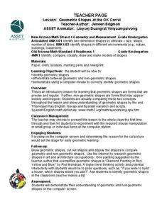 Students explore regular geometric shapes. In this shapes lesson plan, students investigate geometric shapes in the world around them. Students differentiate between regular and irregular shapes.