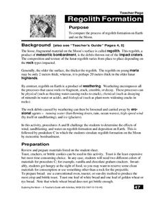 Students explain the difference between regolith formation on Earth and the Moon. In this space science lesson, students model the different factors affecting regolith formation on Earth. They identify the different types of weathering.