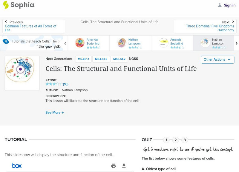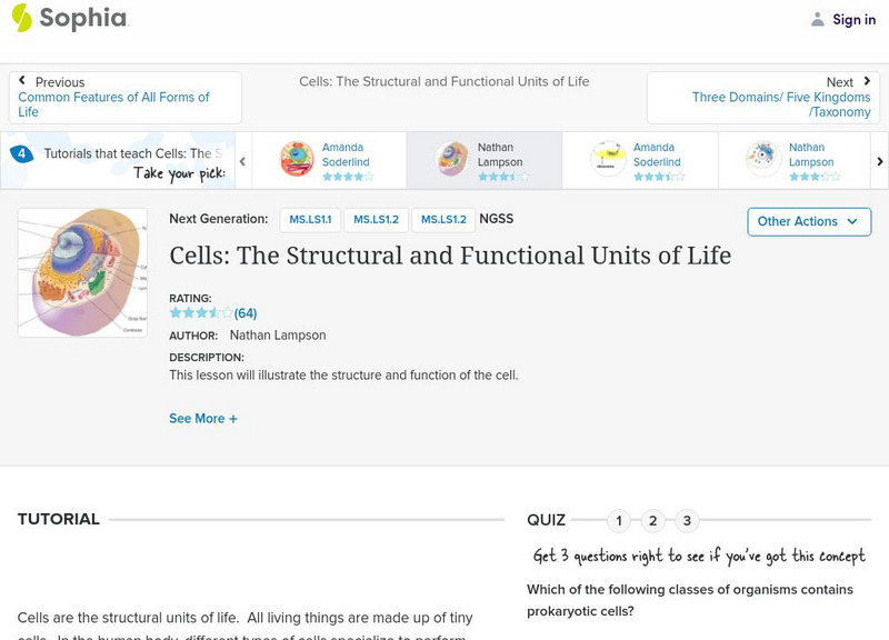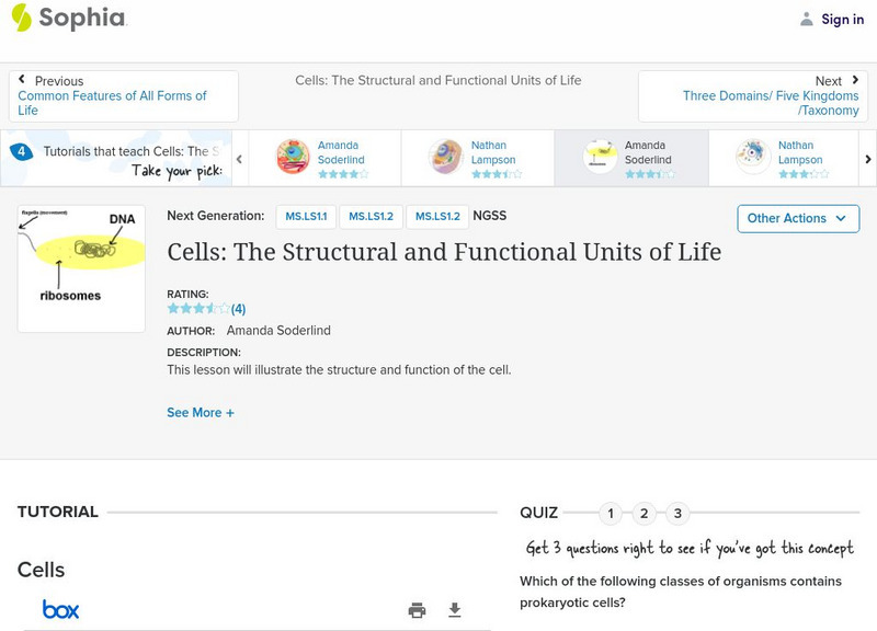 Sophia: Cells: The Structural and Functional Units of Life: Lesson 3
