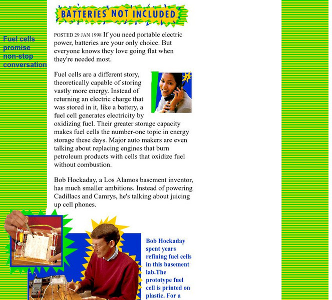 A good online article from The Why? Files about an inventor who is perfecting a fuel cell to operate (what else?) a cell phone. Interesting, with enough technical stuff to give it some body.