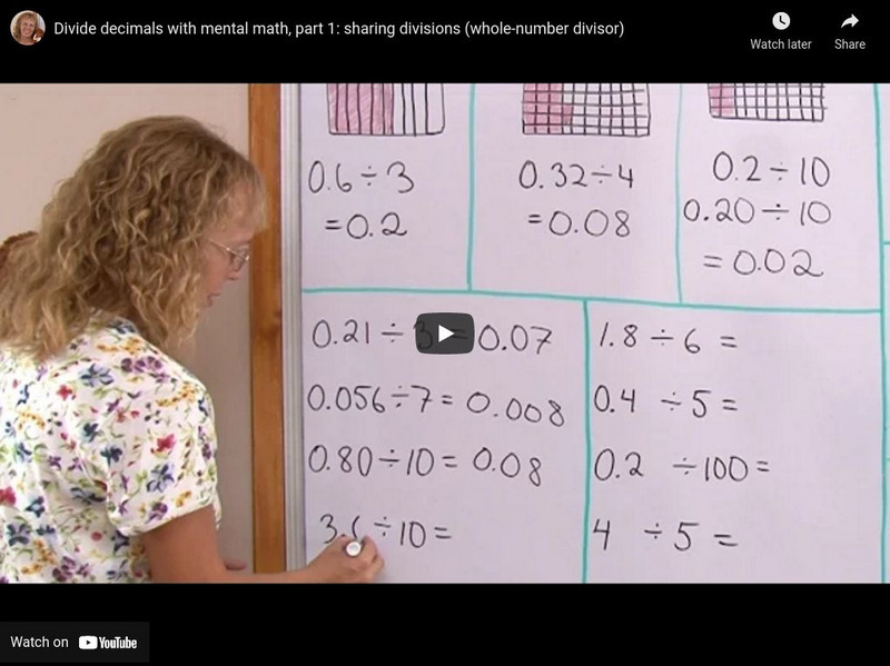 [Free Registration/Login may be required to access all resource tools.] Video demonstrating how to divide a single-digit number into a decimal number. Shows examples using numbers with 1 to 4 digits after the decimal point. [0:55]