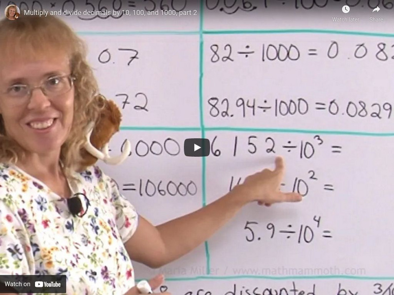 In this lesson, students learn how to multiply and divide decimals by powers of ten. [5:31]