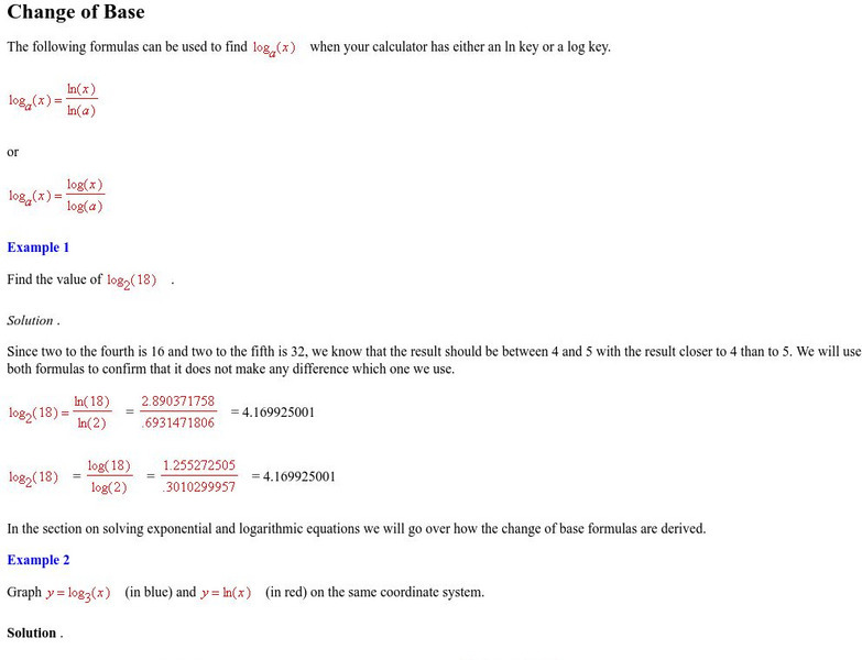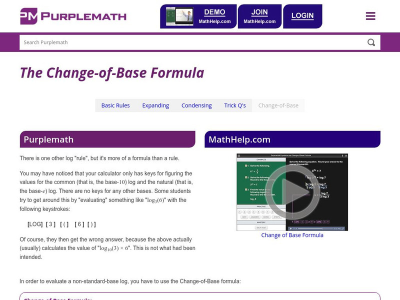Purplemath: Change of Base