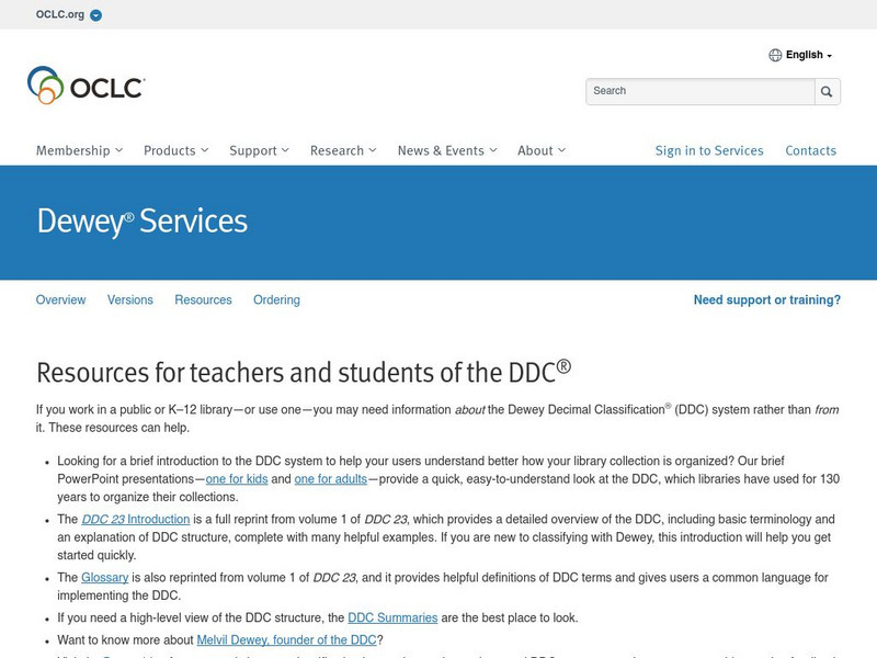 High school students will learn the distinction between the Dewey Decimal Classification (DDC) and the Library of Congress Classification (LCC). After a PowerPoint presentation of the LCC, the students will compare and contrast the two...